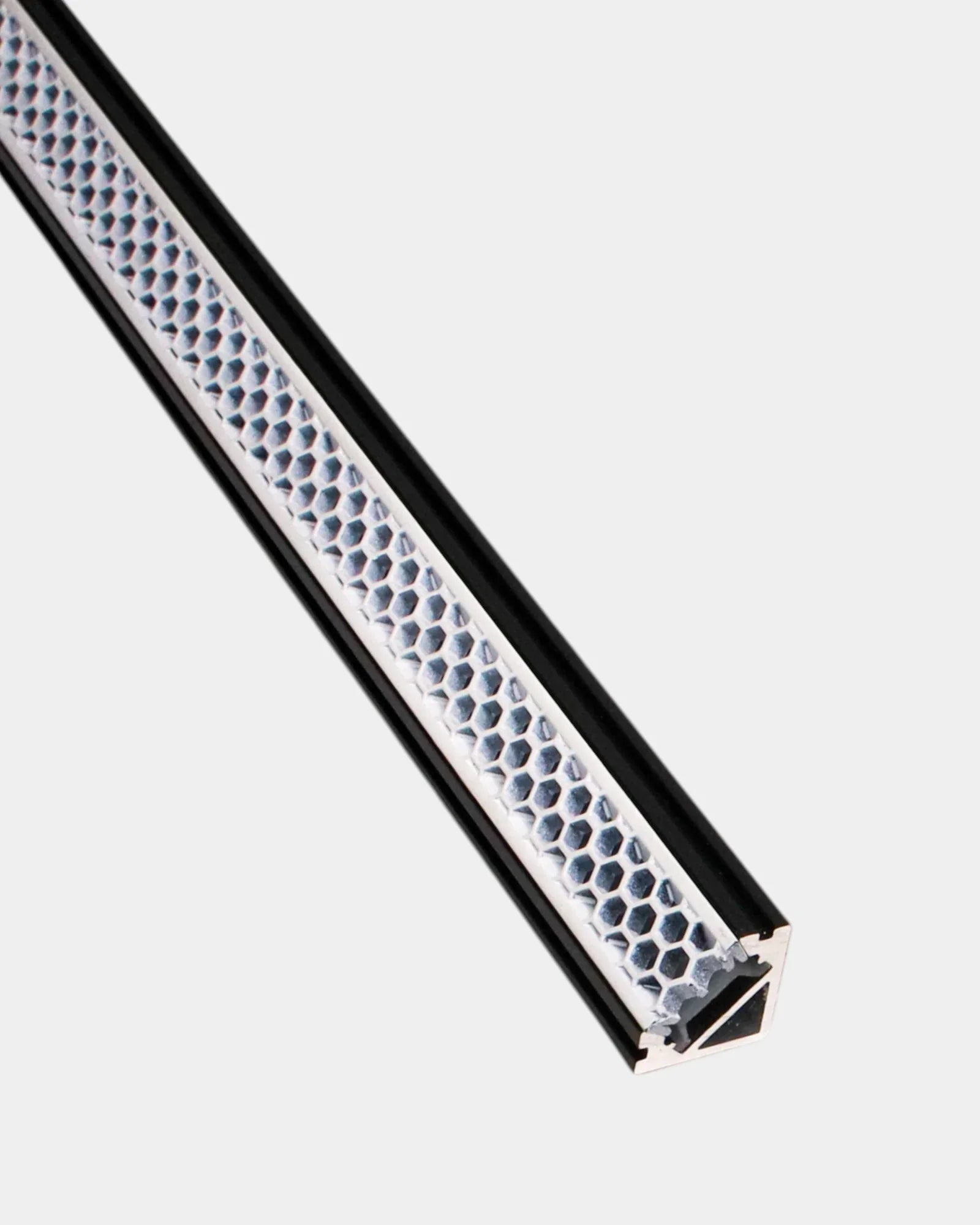 The honeycomb lens eliminates glare from multiple viewing angles, perfect for open-plan spaces or perpendicular sightlines, while the linear slot diffuser directs light along the corner line, reducing glare for people walking parallel to the installation (ideal for hallways and corridors).