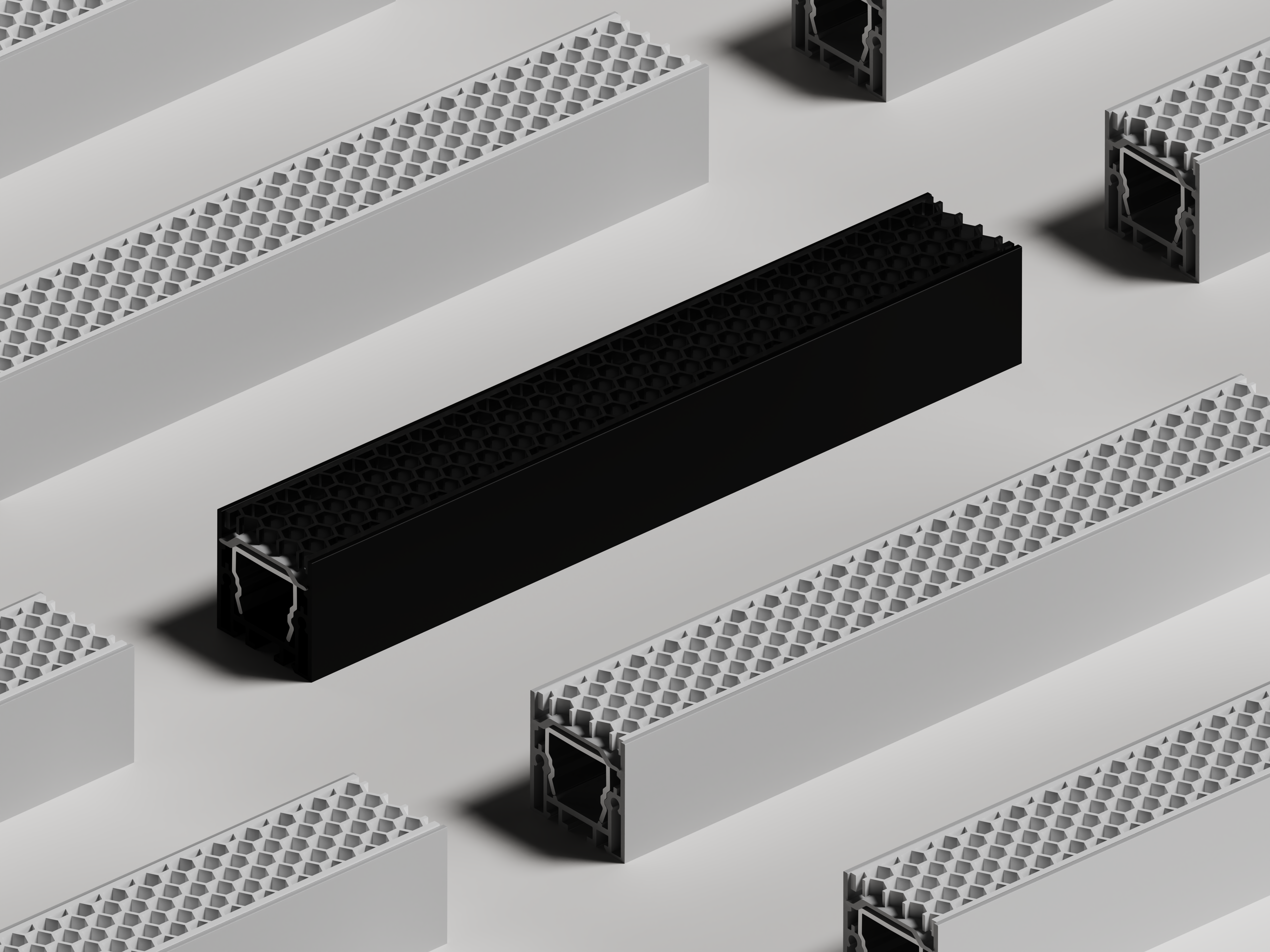 Designed for environments where glare must be virtually eliminated while maintaining powerful, even illumination, NERO PURE features advanced anti-glare lens technology. Choose the honeycomb diffuser to block light from every direction for omnidirectional comfort (ideal for open offices, retail atriums, or multi-view spaces), or the linear slot diffuser to direct light precisely along the run, minimising glare for walkthrough zones like corridors, lobbies, or long hallways.