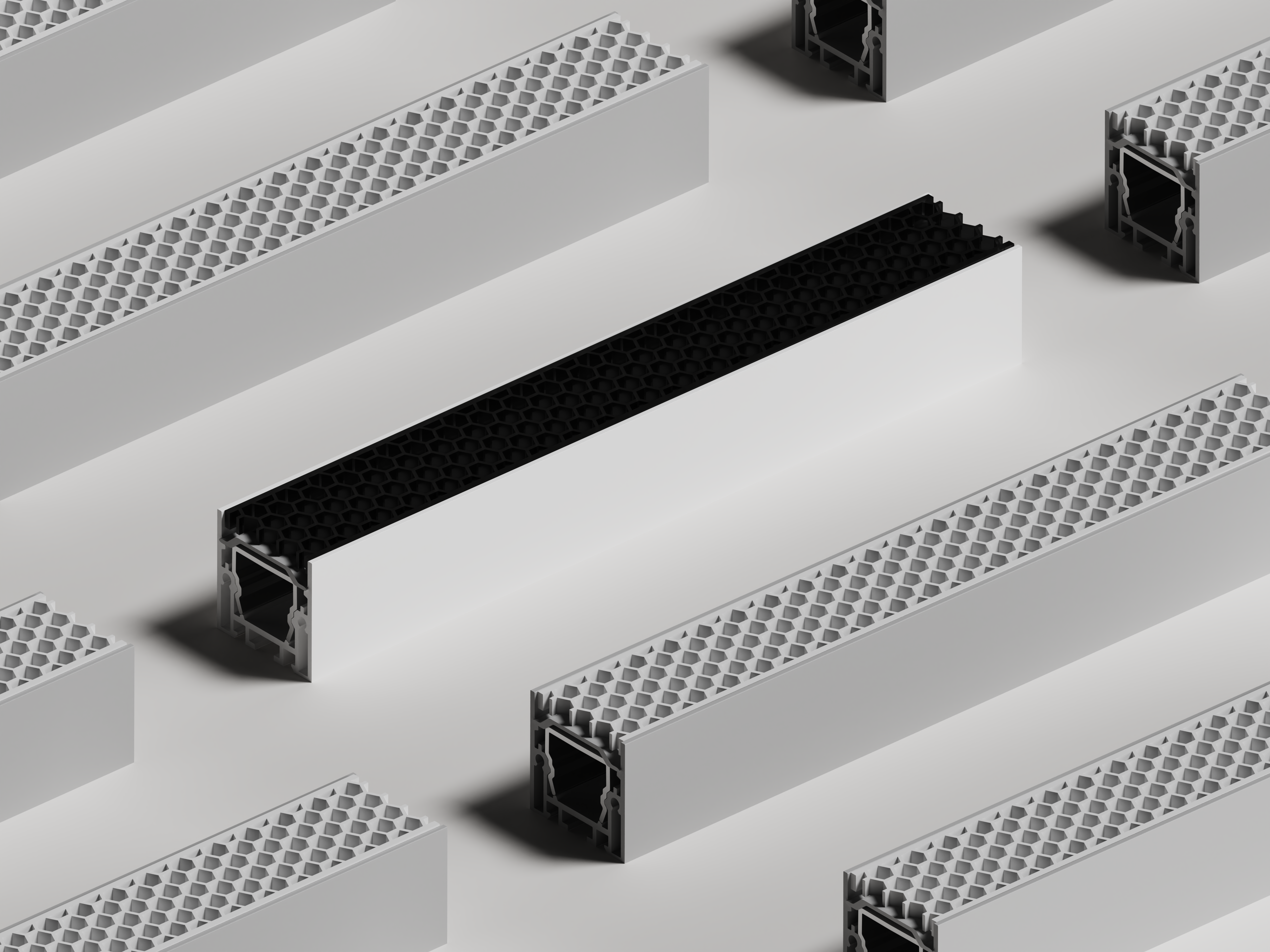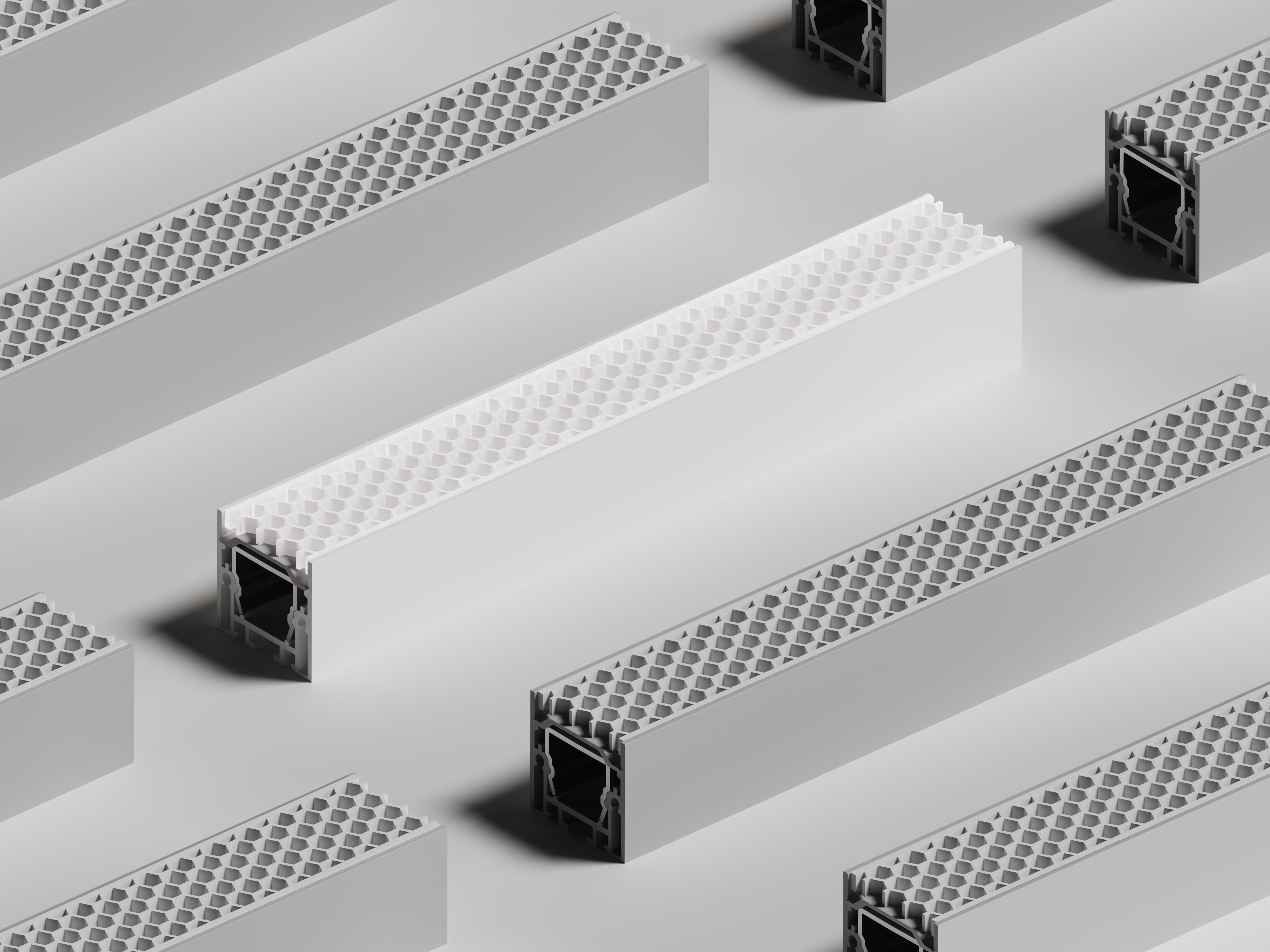 Low-Glare Excellence: Honeycomb eliminates glare from all angles; linear slot optimises for parallel viewing paths.