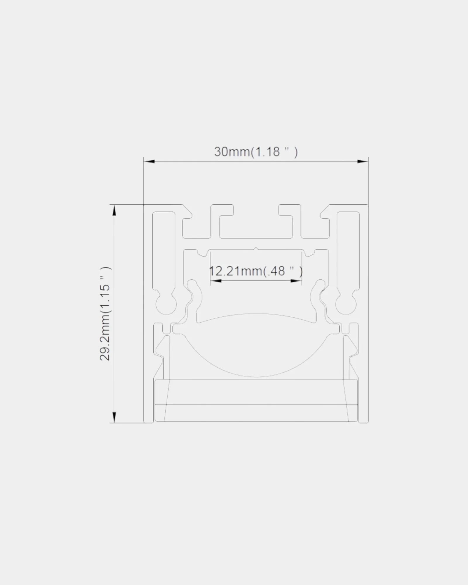 Generous 30 × 29.2 mm Profile: Substantial scale with 12.2 mm inner channel for high-output LED strips and optimal light distribution.