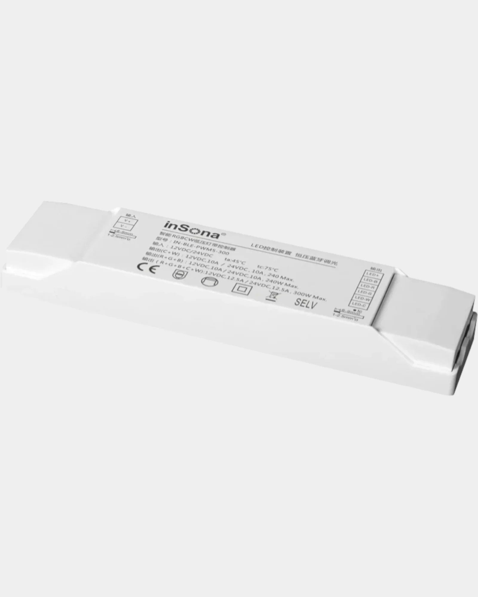 The Sona 300 PWM delivers high-capacity smart control for large LED strip installations. With up to 300W capacity and 5-channel output, it is ideal for large architectural and commercial lighting applications requiring precise colour and dimming control.